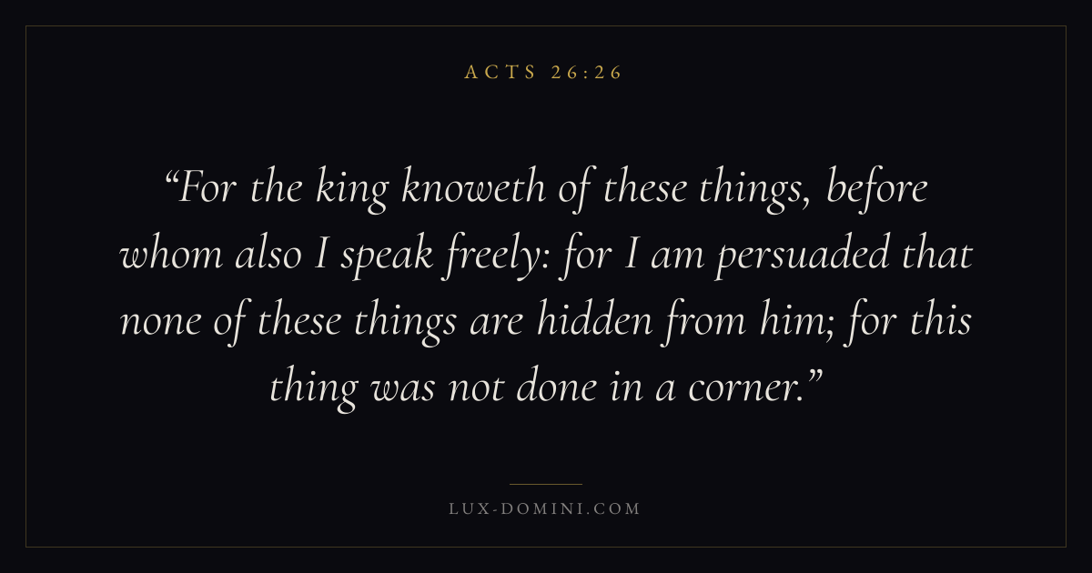 For the king knoweth of these things, before whom also I speak freely: for I am persuaded that none of these things are hidden from him; for this thing was not done in a corner.