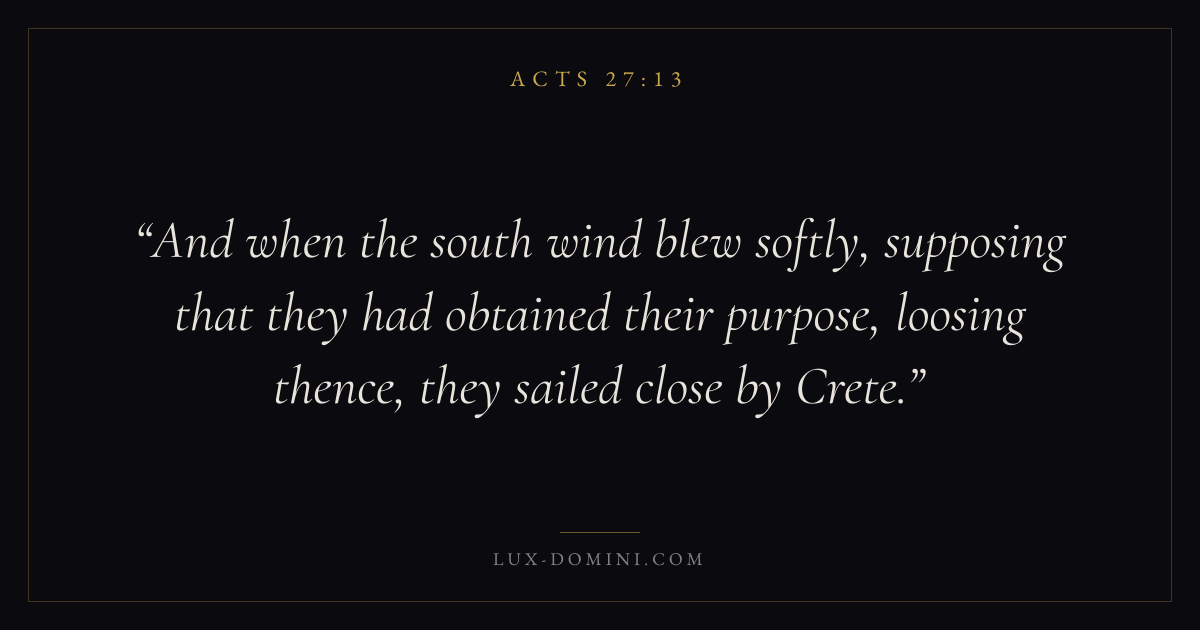 And when the south wind blew softly, supposing that they had obtained their purpose, loosing thence, they sailed close by Crete.