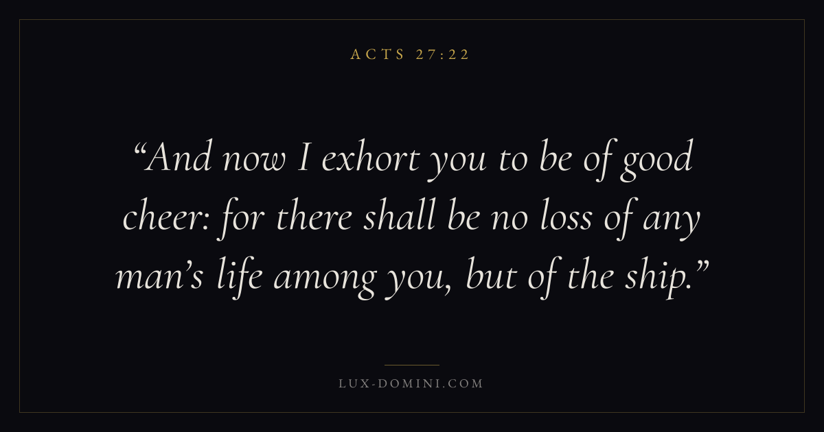 And now I exhort you to be of good cheer: for there shall be no loss of any man’s life among you, but of the ship.