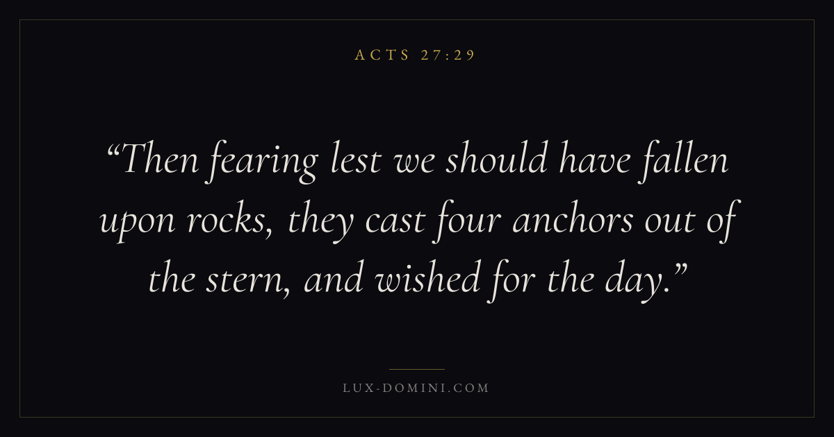 Then fearing lest we should have fallen upon rocks, they cast four anchors out of the stern, and wished for the day.