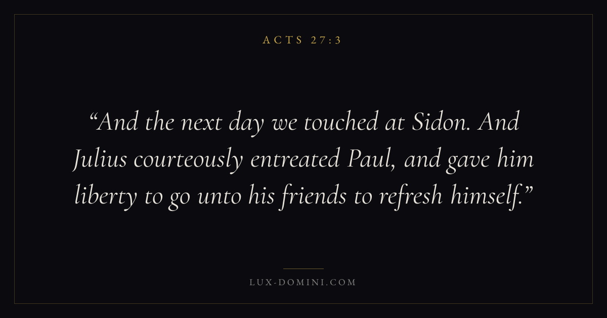 And the next day we touched at Sidon. And Julius courteously entreated Paul, and gave him liberty to go unto his friends to refresh himself.