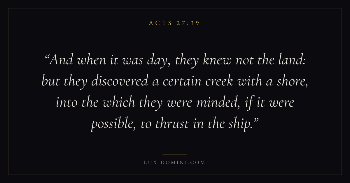 And when it was day, they knew not the land: but they discovered a certain creek with a shore, into the which they were minded, if it were possible, to thrust in the ship.
