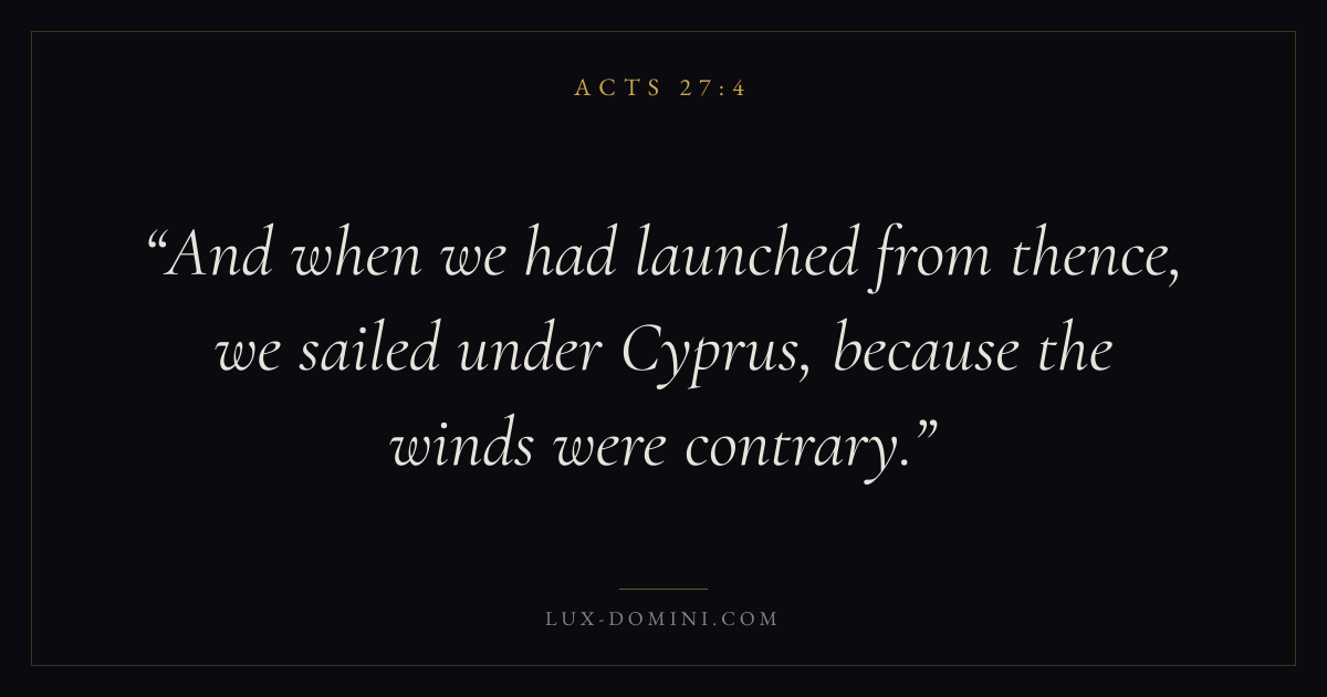 And when we had launched from thence, we sailed under Cyprus, because the winds were contrary.