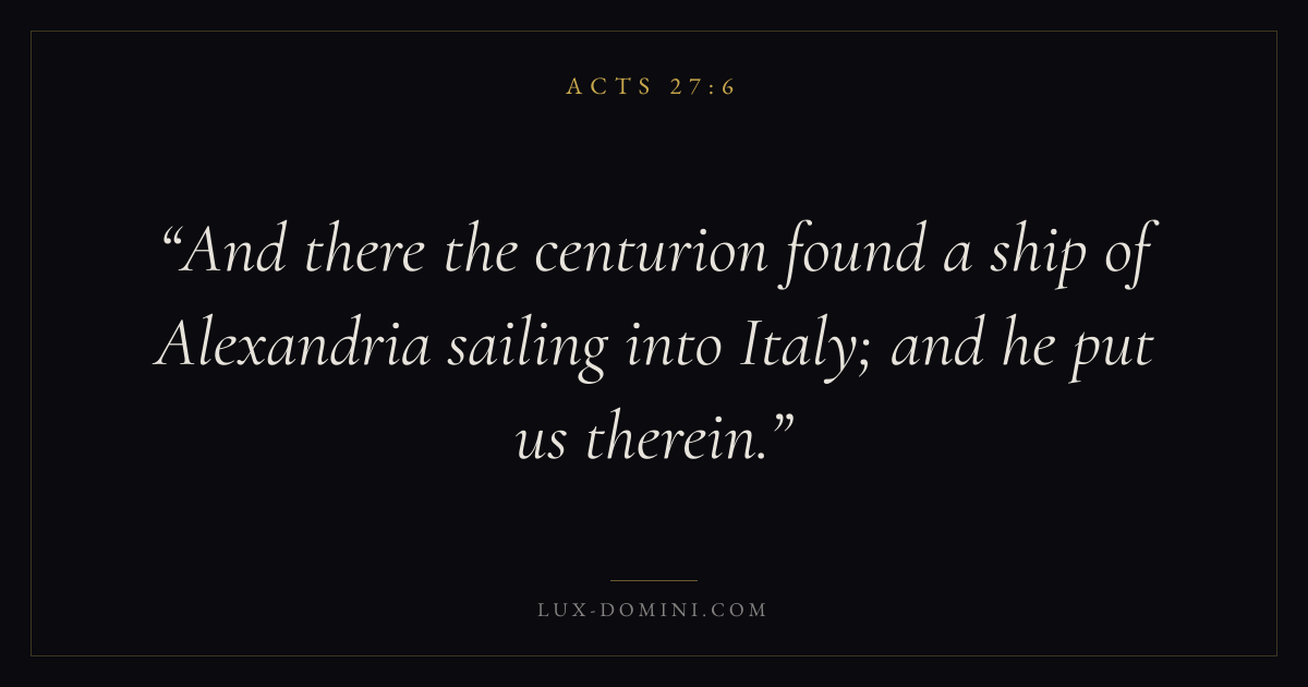 And there the centurion found a ship of Alexandria sailing into Italy; and he put us therein.
