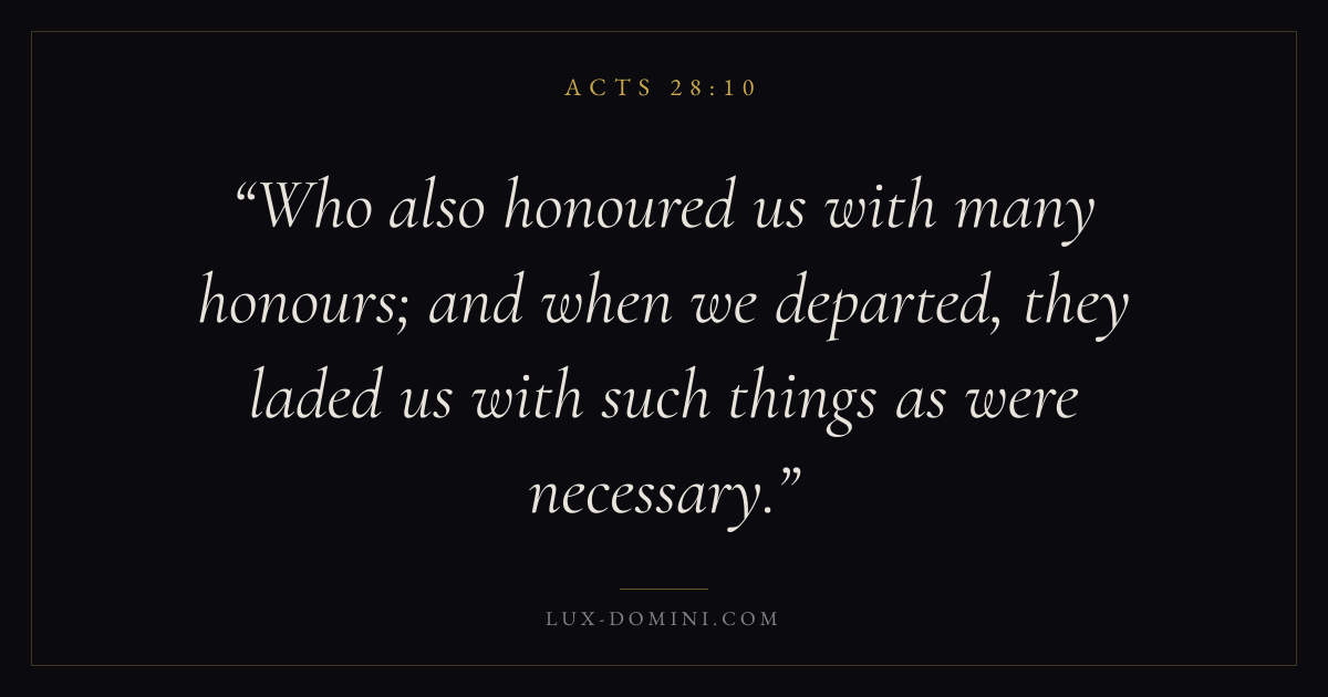 Who also honoured us with many honours; and when we departed, they laded us with such things as were necessary.