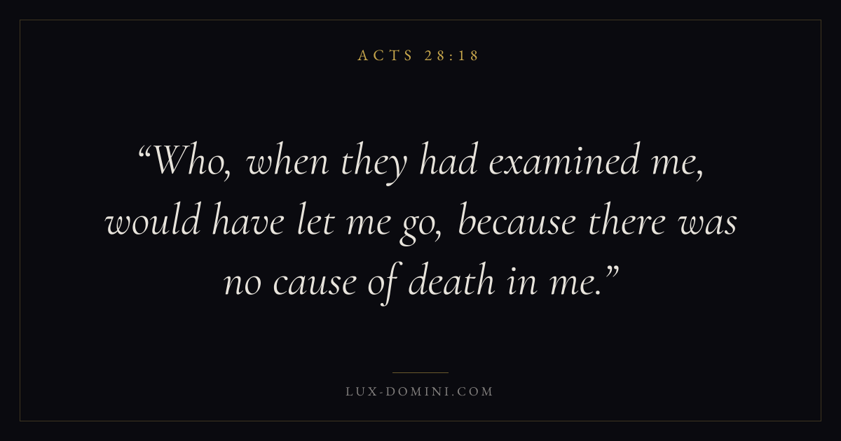Who, when they had examined me, would have let me go, because there was no cause of death in me.