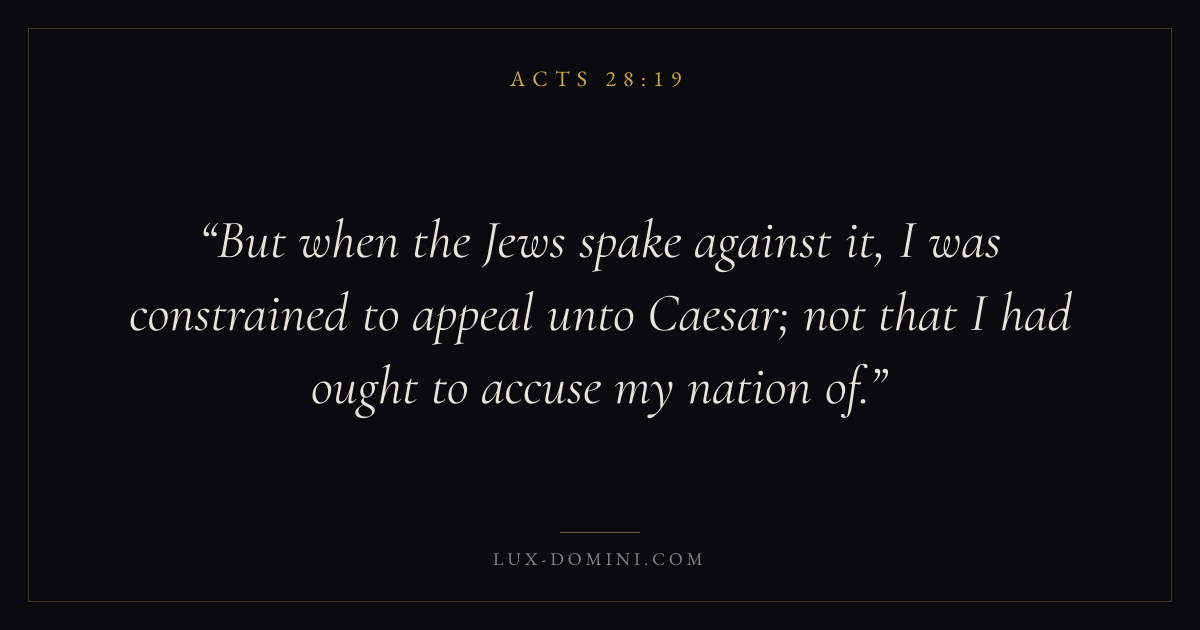 But when the Jews spake against it, I was constrained to appeal unto Caesar; not that I had ought to accuse my nation of.
