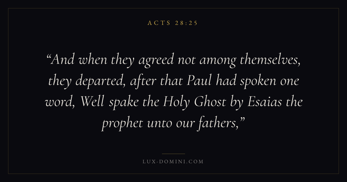 And when they agreed not among themselves, they departed, after that Paul had spoken one word, Well spake the Holy Ghost by Esaias the prophet unto our fathers,