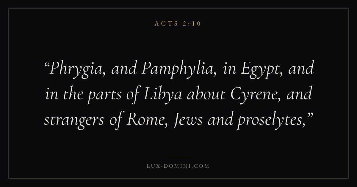 Phrygia, and Pamphylia, in Egypt, and in the parts of Libya about Cyrene, and strangers of Rome, Jews and proselytes,