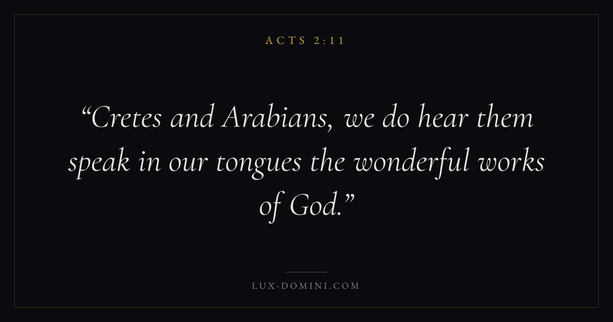 Cretes and Arabians, we do hear them speak in our tongues the wonderful works of God.