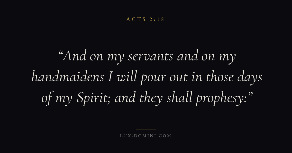 And on my servants and on my handmaidens I will pour out in those days of my Spirit; and they shall prophesy: