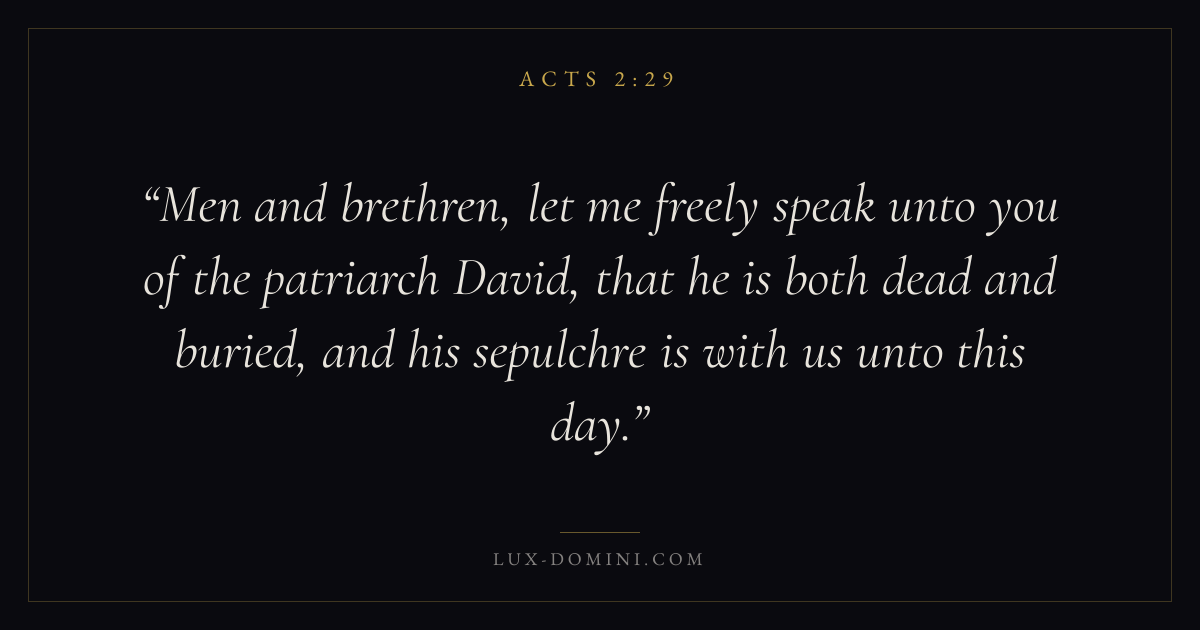 Men and brethren, let me freely speak unto you of the patriarch David, that he is both dead and buried, and his sepulchre is with us unto this day.