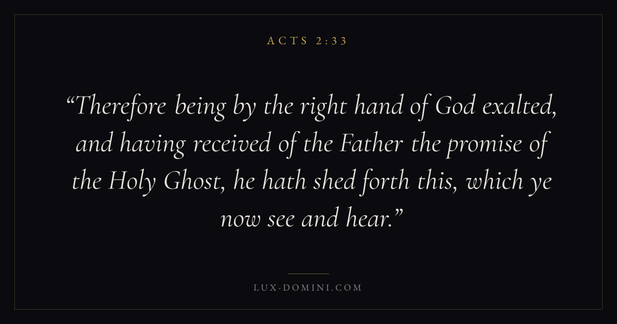 Therefore being by the right hand of God exalted, and having received of the Father the promise of the Holy Ghost, he hath shed forth this, which ye now see and hear.