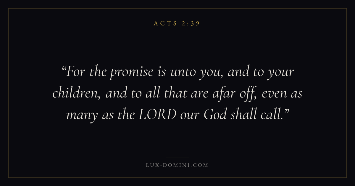 For the promise is unto you, and to your children, and to all that are afar off, even as many as the LORD our God shall call.