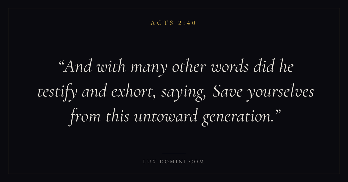 And with many other words did he testify and exhort, saying, Save yourselves from this untoward generation.