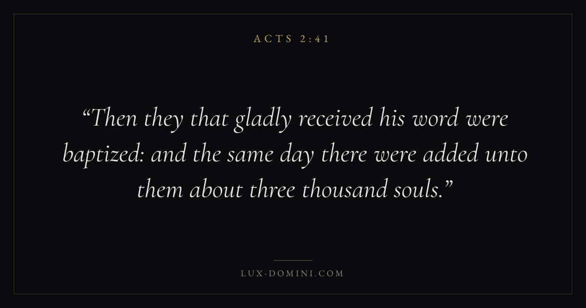 Then they that gladly received his word were baptized: and the same day there were added unto them about three thousand souls.