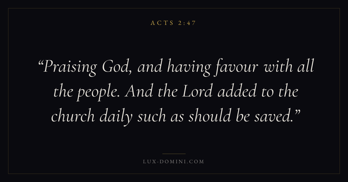 Praising God, and having favour with all the people. And the Lord added to the church daily such as should be saved.