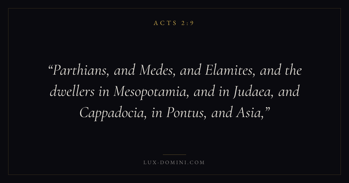 Parthians, and Medes, and Elamites, and the dwellers in Mesopotamia, and in Judaea, and Cappadocia, in Pontus, and Asia,