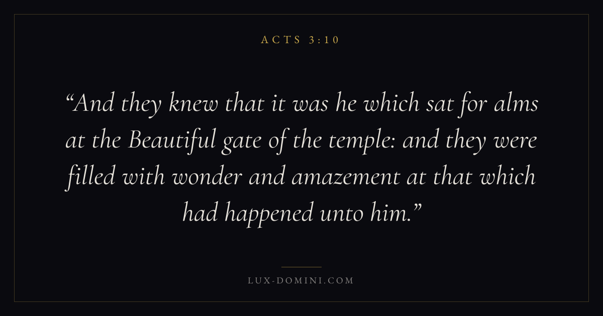 And they knew that it was he which sat for alms at the Beautiful gate of the temple: and they were filled with wonder and amazement at that which had happened unto him.