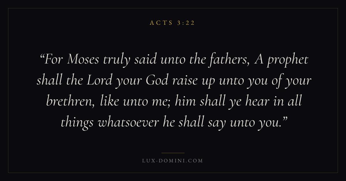 For Moses truly said unto the fathers, A prophet shall the Lord your God raise up unto you of your brethren, like unto me; him shall ye hear in all things whatsoever he shall say unto you.