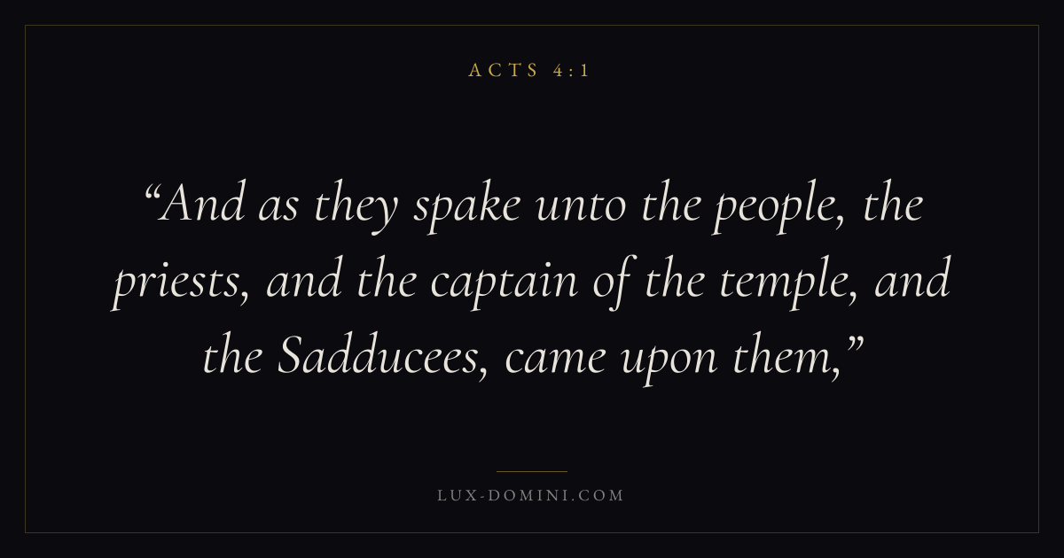 And as they spake unto the people, the priests, and the captain of the temple, and the Sadducees, came upon them,
