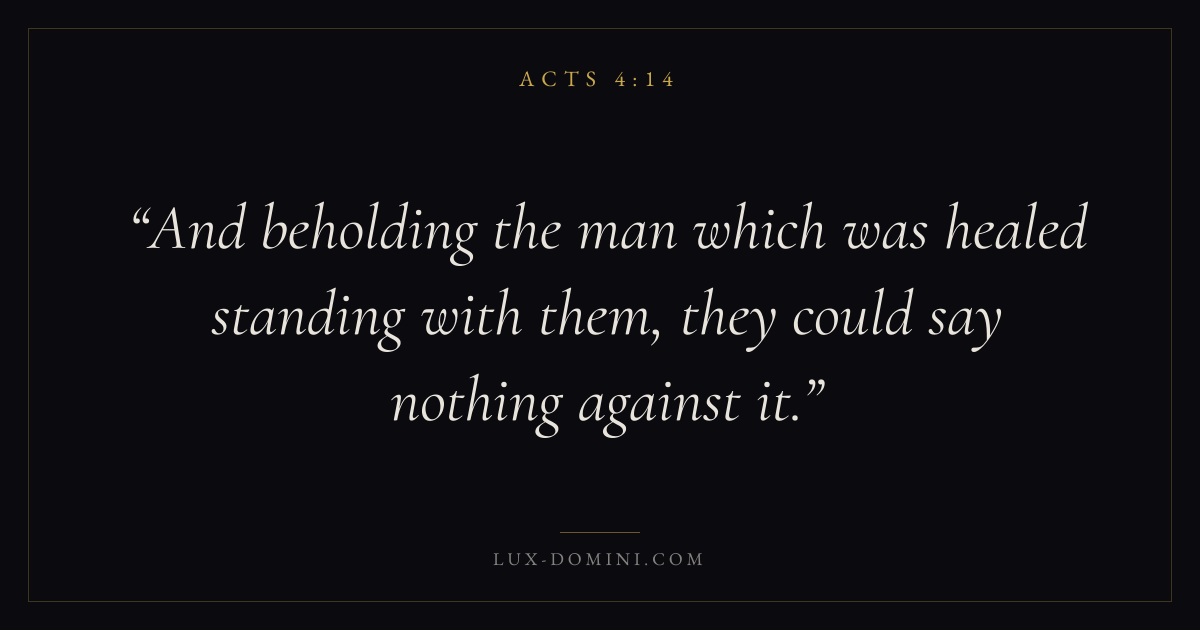 And beholding the man which was healed standing with them, they could say nothing against it.