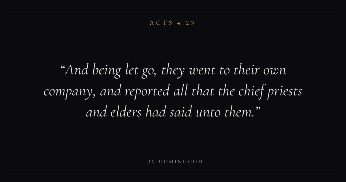 And being let go, they went to their own company, and reported all that the chief priests and elders had said unto them.