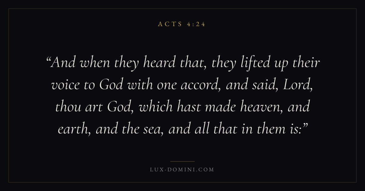 And when they heard that, they lifted up their voice to God with one accord, and said, Lord, thou art God, which hast made heaven, and earth, and the sea, and all that in them is: