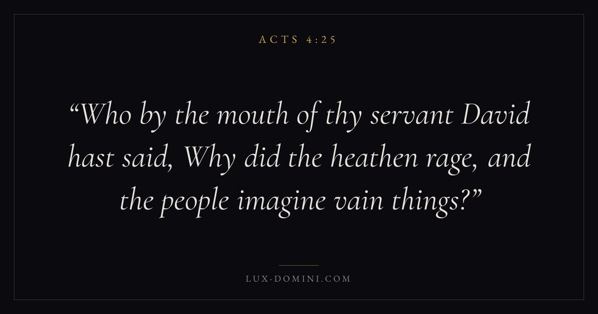 Who by the mouth of thy servant David hast said, Why did the heathen rage, and the people imagine vain things?