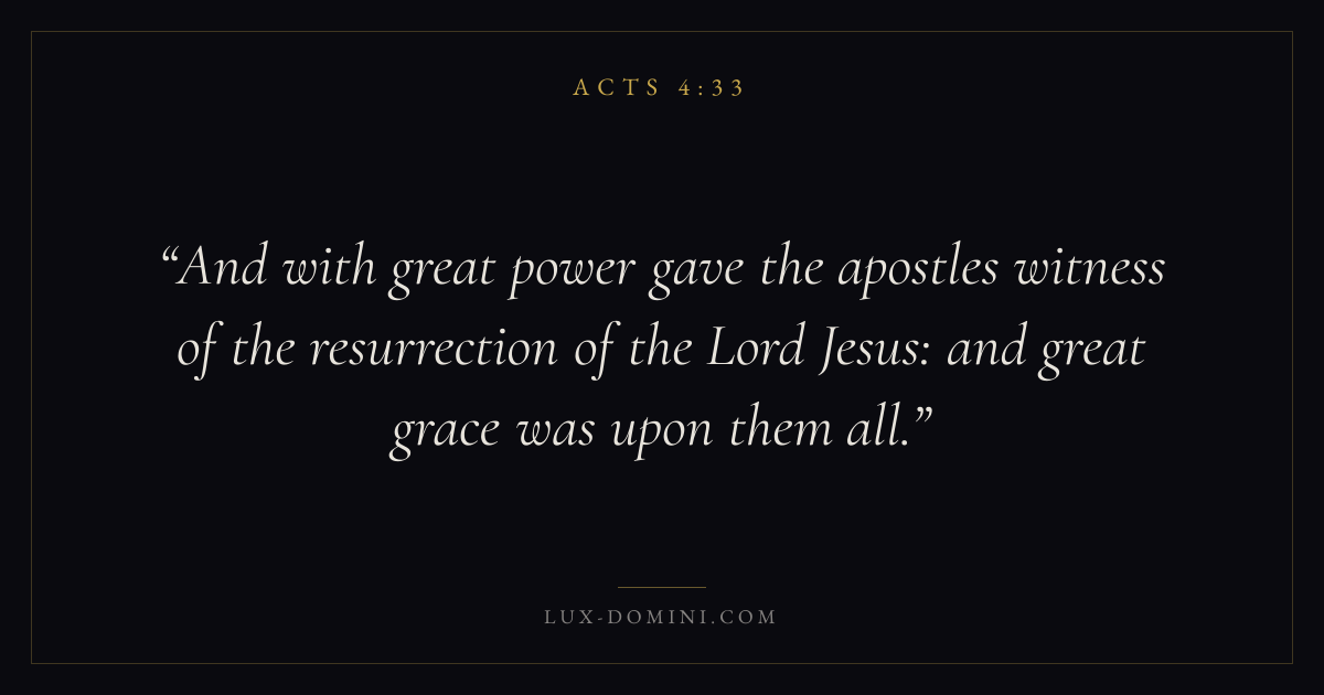 And with great power gave the apostles witness of the resurrection of the Lord Jesus: and great grace was upon them all.