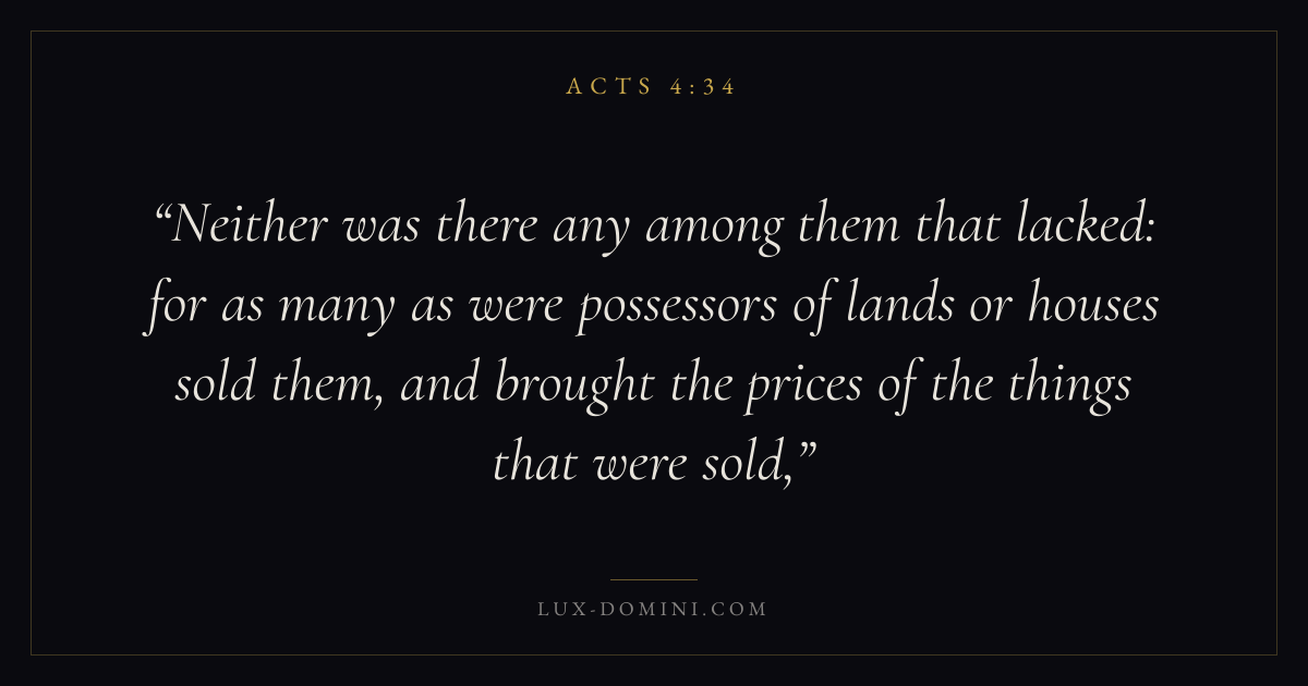 Neither was there any among them that lacked: for as many as were possessors of lands or houses sold them, and brought the prices of the things that were sold,