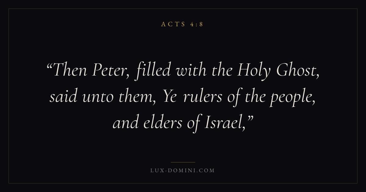 Then Peter, filled with the Holy Ghost, said unto them, Ye rulers of the people, and elders of Israel,