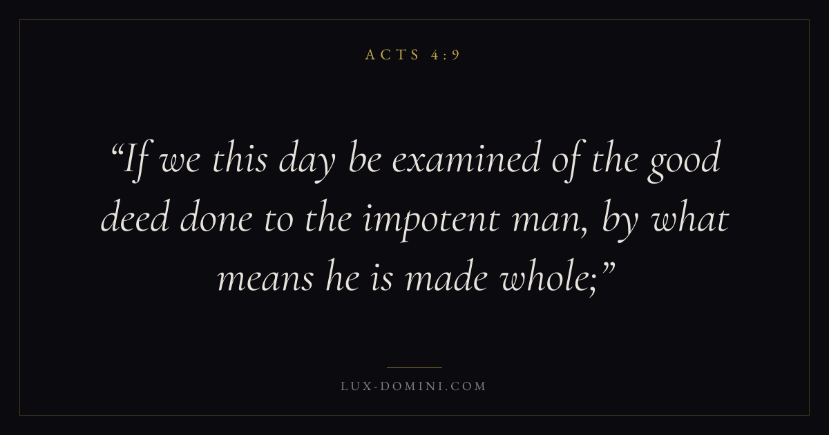 If we this day be examined of the good deed done to the impotent man, by what means he is made whole;