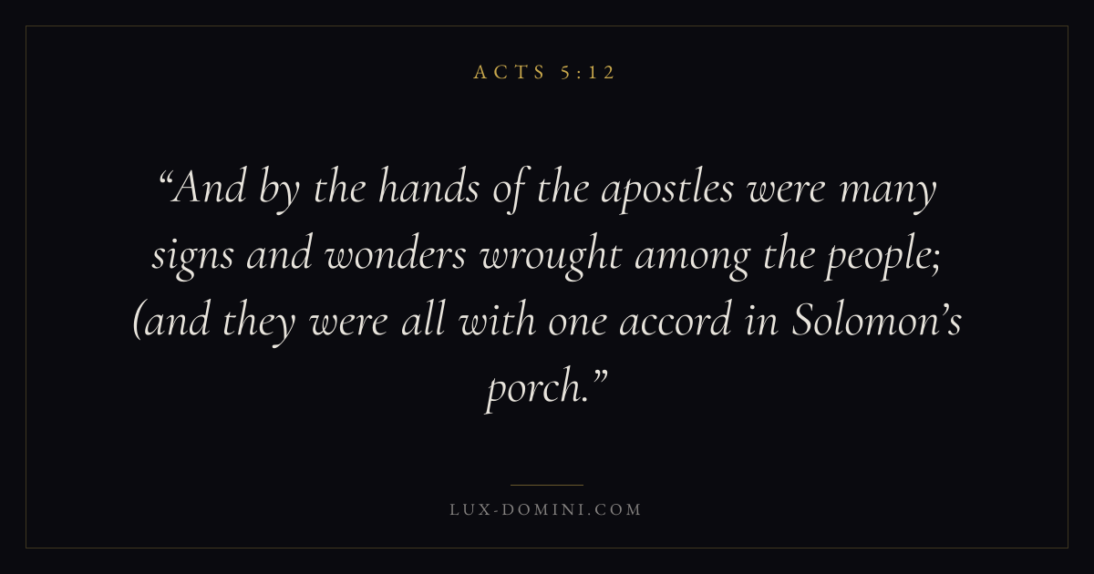 And by the hands of the apostles were many signs and wonders wrought among the people; (and they were all with one accord in Solomon’s porch.