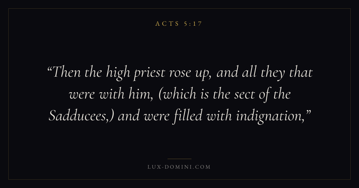 Then the high priest rose up, and all they that were with him, (which is the sect of the Sadducees,) and were filled with indignation,