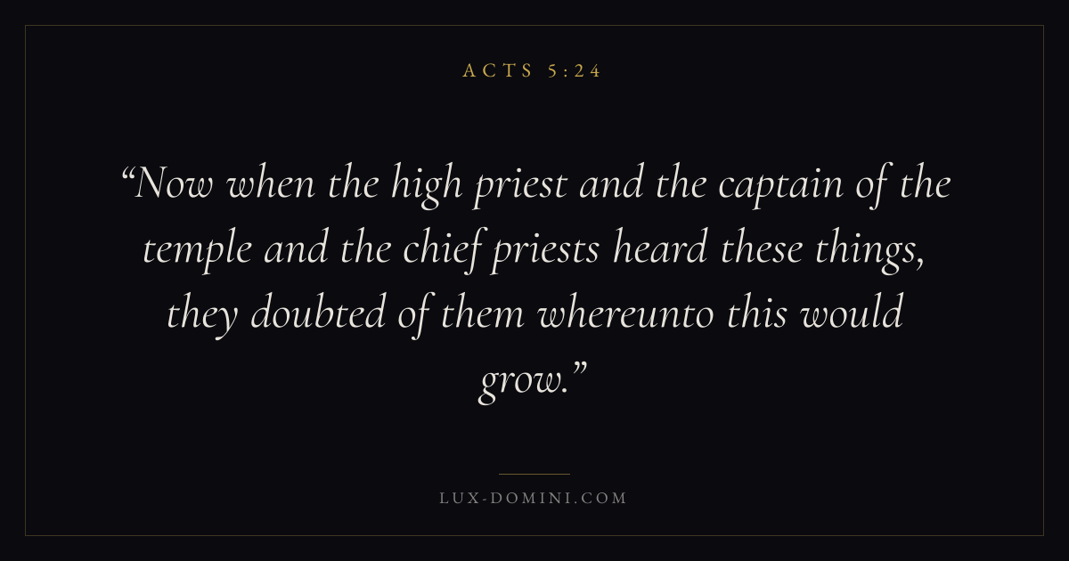 Now when the high priest and the captain of the temple and the chief priests heard these things, they doubted of them whereunto this would grow.