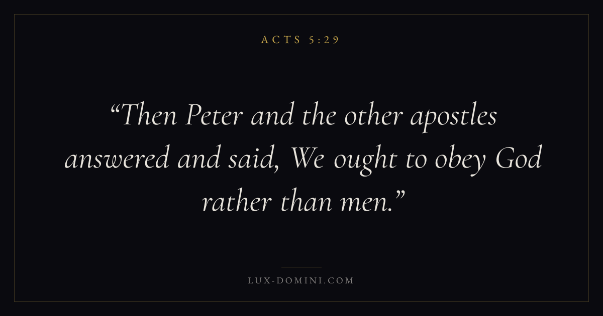 Then Peter and the other apostles answered and said, We ought to obey God rather than men.