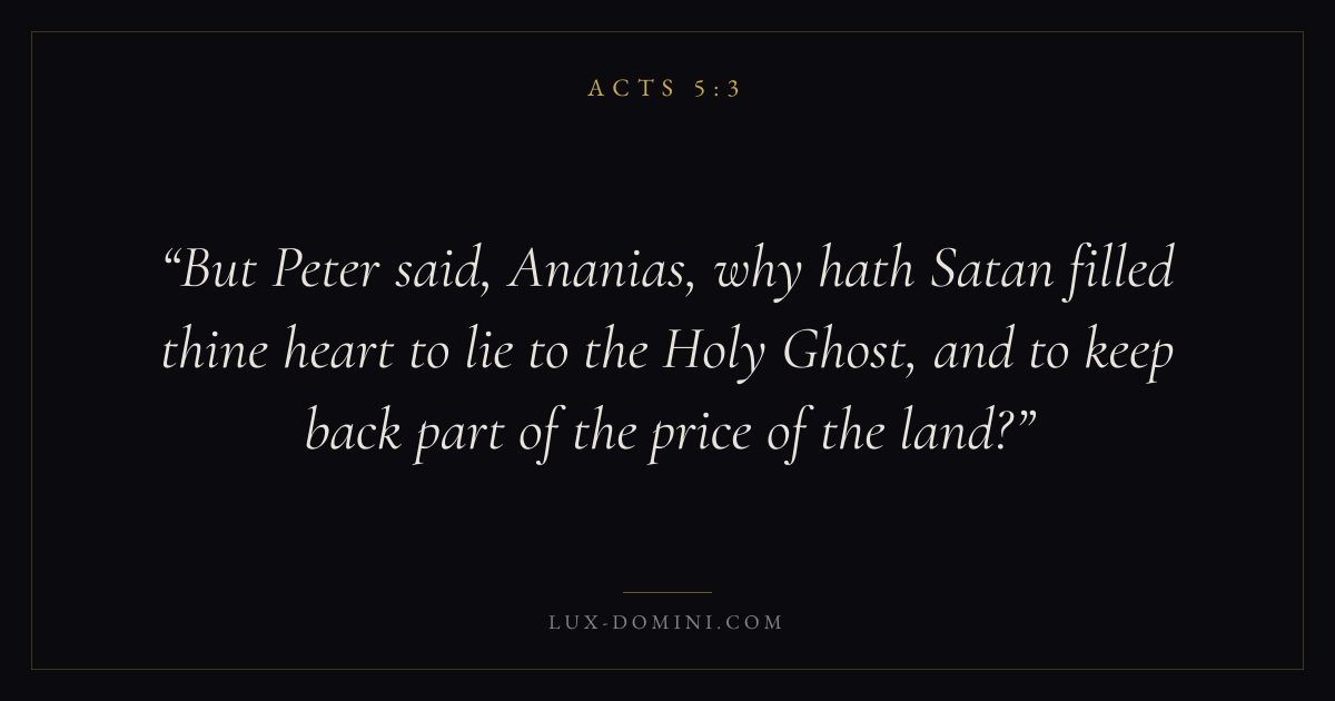 But Peter said, Ananias, why hath Satan filled thine heart to lie to the Holy Ghost, and to keep back part of the price of the land?