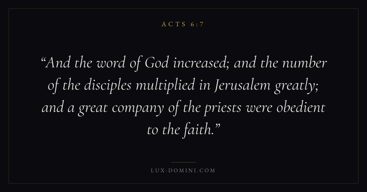 And the word of God increased; and the number of the disciples multiplied in Jerusalem greatly; and a great company of the priests were obedient to the faith.
