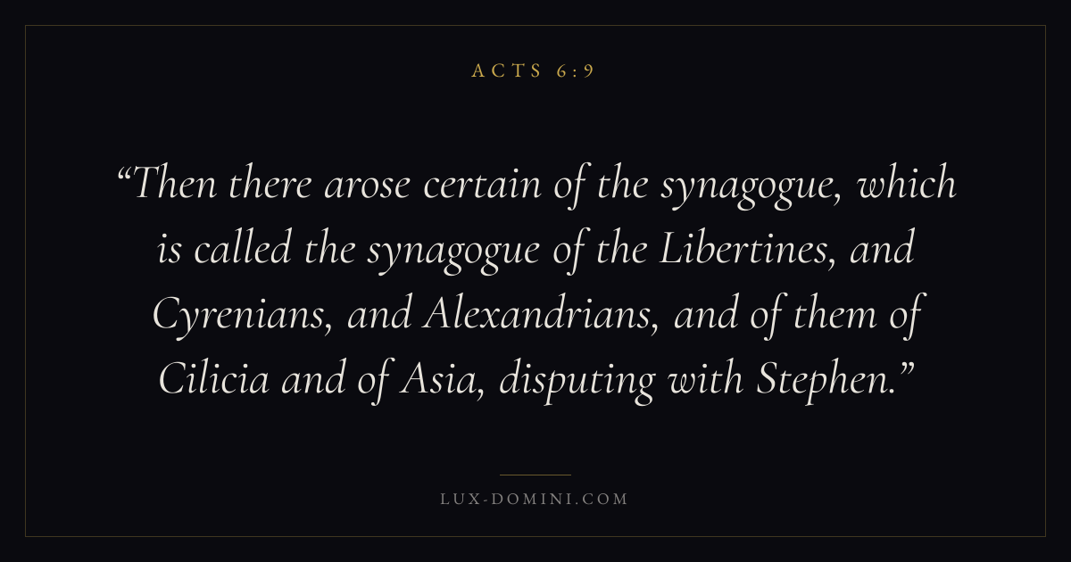 Then there arose certain of the synagogue, which is called the synagogue of the Libertines, and Cyrenians, and Alexandrians, and of them of Cilicia and of Asia, disputing with Stephen.