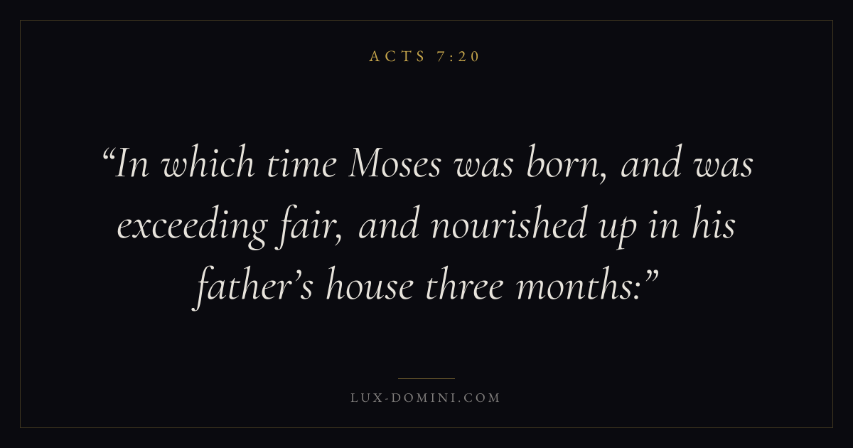 In which time Moses was born, and was exceeding fair, and nourished up in his father’s house three months: