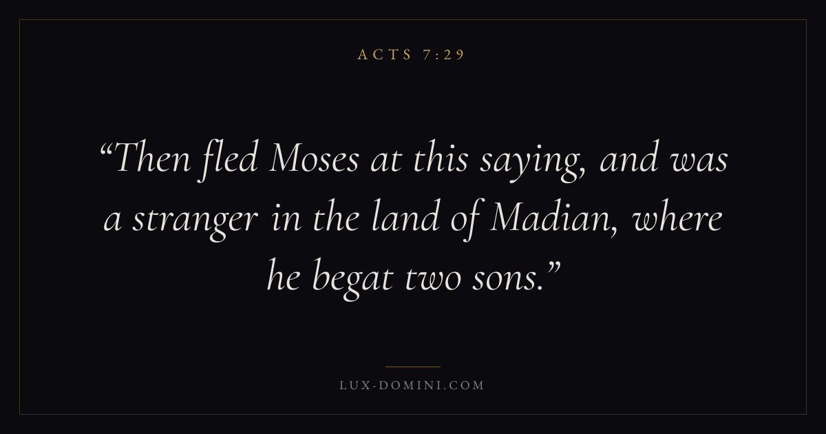 Then fled Moses at this saying, and was a stranger in the land of Madian, where he begat two sons.
