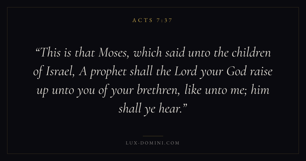This is that Moses, which said unto the children of Israel, A prophet shall the Lord your God raise up unto you of your brethren, like unto me; him shall ye hear.