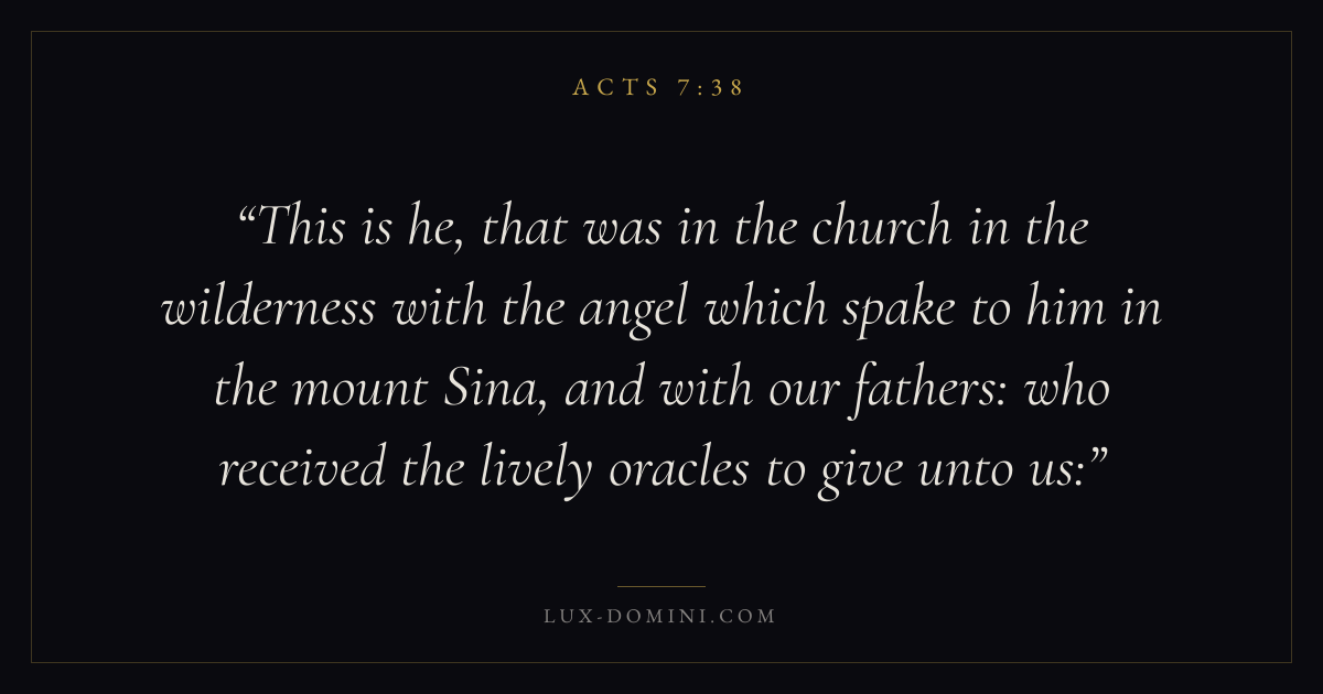 This is he, that was in the church in the wilderness with the angel which spake to him in the mount Sina, and with our fathers: who received the lively oracles to give unto us:
