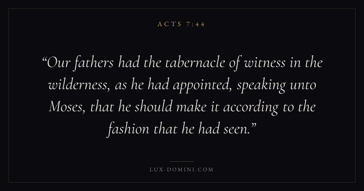 Our fathers had the tabernacle of witness in the wilderness, as he had appointed, speaking unto Moses, that he should make it according to the fashion that he had seen.