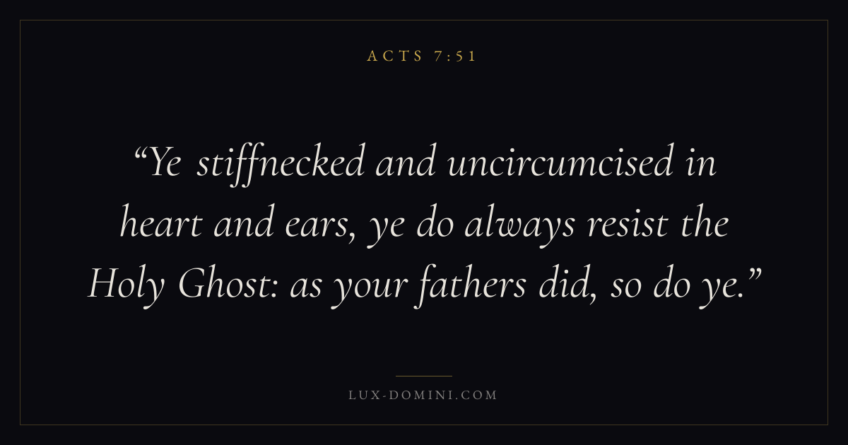 Ye stiffnecked and uncircumcised in heart and ears, ye do always resist the Holy Ghost: as your fathers did, so do ye.