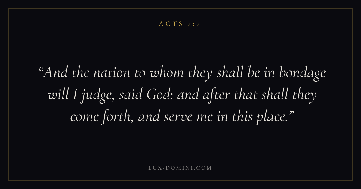 And the nation to whom they shall be in bondage will I judge, said God: and after that shall they come forth, and serve me in this place.
