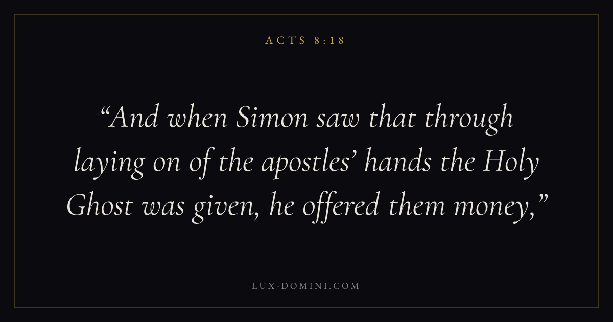 And when Simon saw that through laying on of the apostles’ hands the Holy Ghost was given, he offered them money,