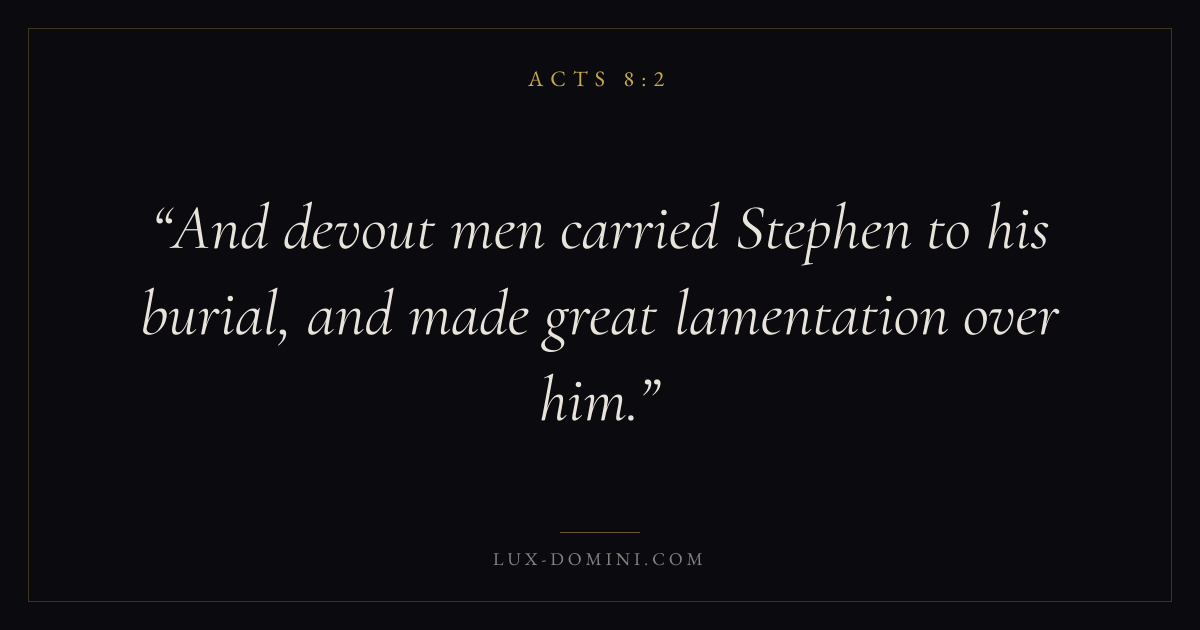 And devout men carried Stephen to his burial, and made great lamentation over him.