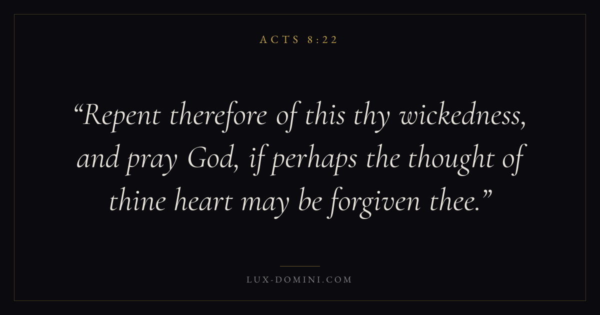Repent therefore of this thy wickedness, and pray God, if perhaps the thought of thine heart may be forgiven thee.